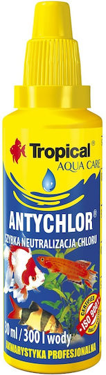Το Tropical Antychlor είναι ένα ειδικό υγρό επεξεργασίας νερού που εξουδετερώνει άμεσα το χλώριο και άλλα επικίνδυνα υποπροϊόντα του νερού βρύσης (όπως οι χλωραμίνες), καθιστώντας το ασφαλές για τα ψάρια του ενυδρείου σου.