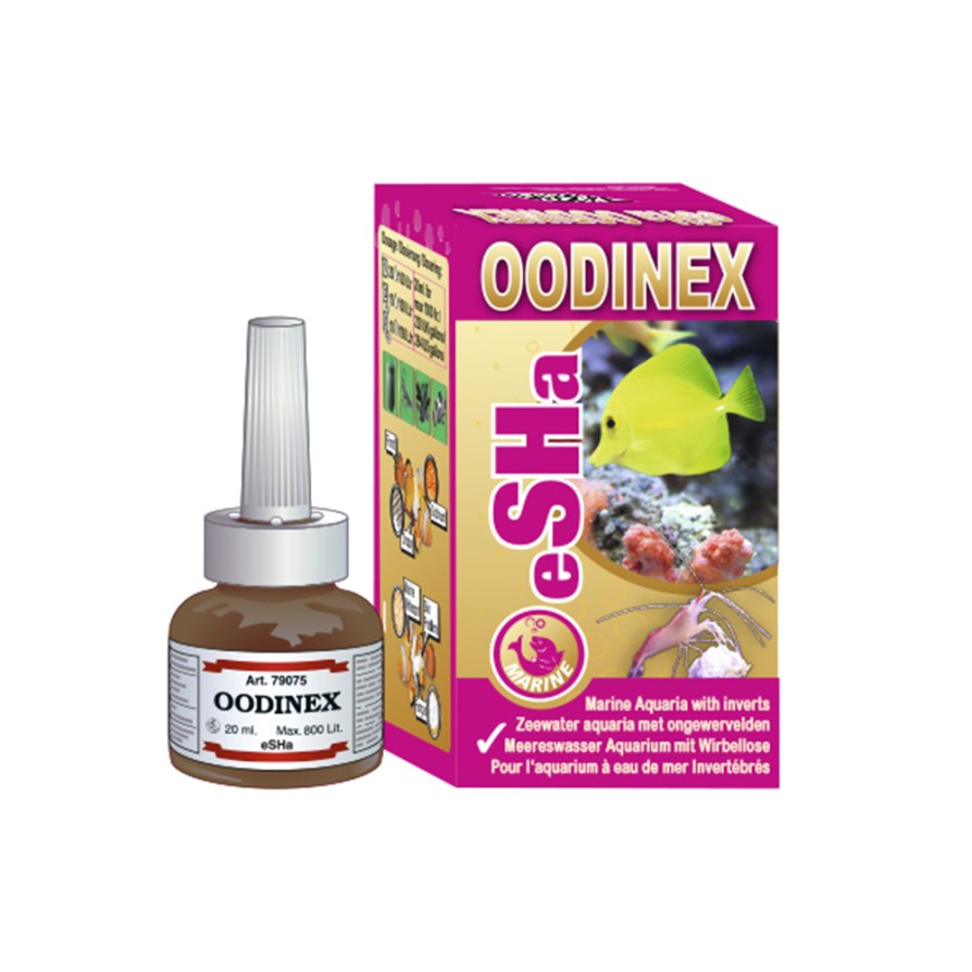 Το OODINEX είναι μια θεραπεία ευρέος φάσματος για ασθένειες θαλάσσιων ψαριών σε ενυδρεία με ασπόνδυλα (όπως θαλάσσιες ανεμώνες, κοράλλια και καρκινοειδή). Η μοναδική του σύνθεση αντιμετωπίζει ένα ευρύ φάσμα μυκητιασικών, βακτηριακών και παρασιτικών λοιμώξεων. Το ευρύ φάσμα δράσης του OODINEX σημαίνει ότι ο κίνδυνος επιλογής λανθασμένης θεραπείας ουσιαστικά εξαλείφεται. Εάν δεν υπάρχουν ασπόνδυλα στο ενυδρείο, συνιστάται η χρήση του eSHa TRIMARIN, το οποίο έχει ακόμη ευρύτερο φάσμα θεραπείας. ...Περισσότερα