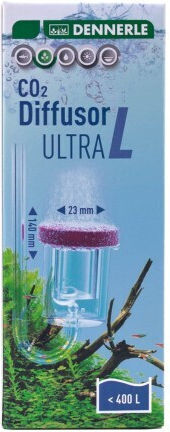 Dennerle offers a range of state-of-the-art CO 2 add-ons called the "CO 2 Diffusor Ultra". The diffusers are made of transparent, waterproof acrylic. This makes them much safer to handle than conventional glass diffusers and also ideal for children's aquariums. Due to the extremely compact shape, they can be installed "invisibly" in the aquarium using the supplied suction socket. Thanks to their attractive appearance, however, they do not bother even in the visible area. Recently developed membranes are made of special sintered material with extremely small pores. The resulting nano-atomization of the supplied CO 2 ensures a very efficient and safe dissolution of this important plant nutrient in the aquarium. With the help of the built-in bubble meter, the amount of CO 2 added can be easily controlled at any time. The CO 2 Diffusers Ultra can be combined with all common CO 2 systems. The hose connection fits all commercially available CO 2 hoses with 4/6 mm. ...More