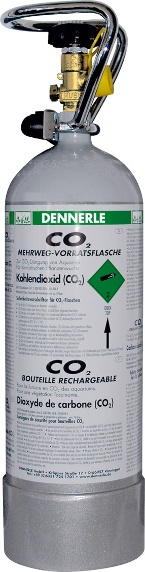 CO2 flask with overpressure protection and chrome-plated cage (valve protection cage). ...More