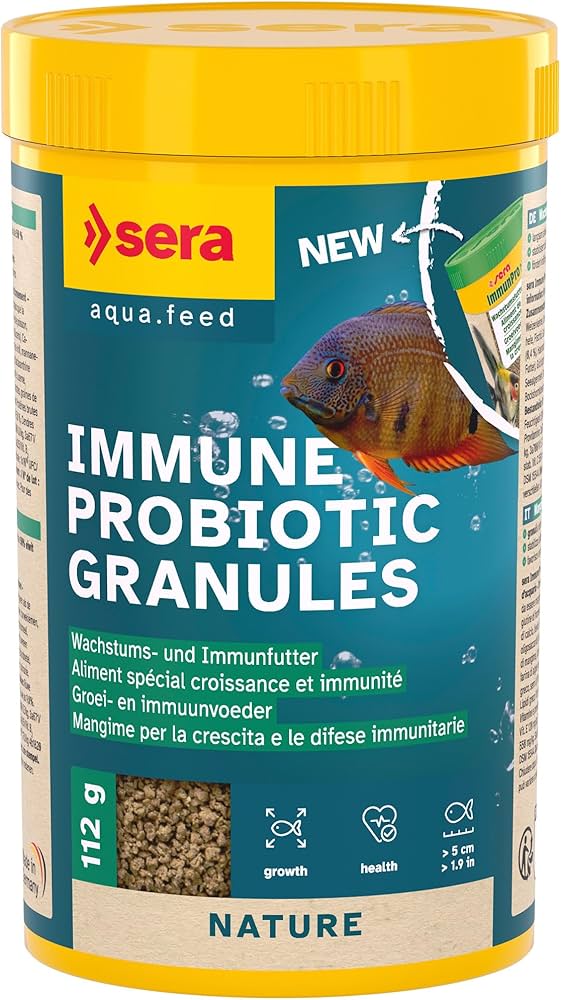 Sera ImmunPro Nature is the growing food for all ornamental fish over 4 cm. Probiotics are applied to food with a particularly gentle process and stabilize the intestinal flora of ornamental fish. They ensure reduced water contamination due to the more efficient absorption of food. Due to the high protein content of over 50%, the addition of probiotics and other functional ingredients such as MOS, Haematococcus (rich in natural astaxanthin) and spirulina, ensure fast growth, strong growth and bright color of the fish. ...More