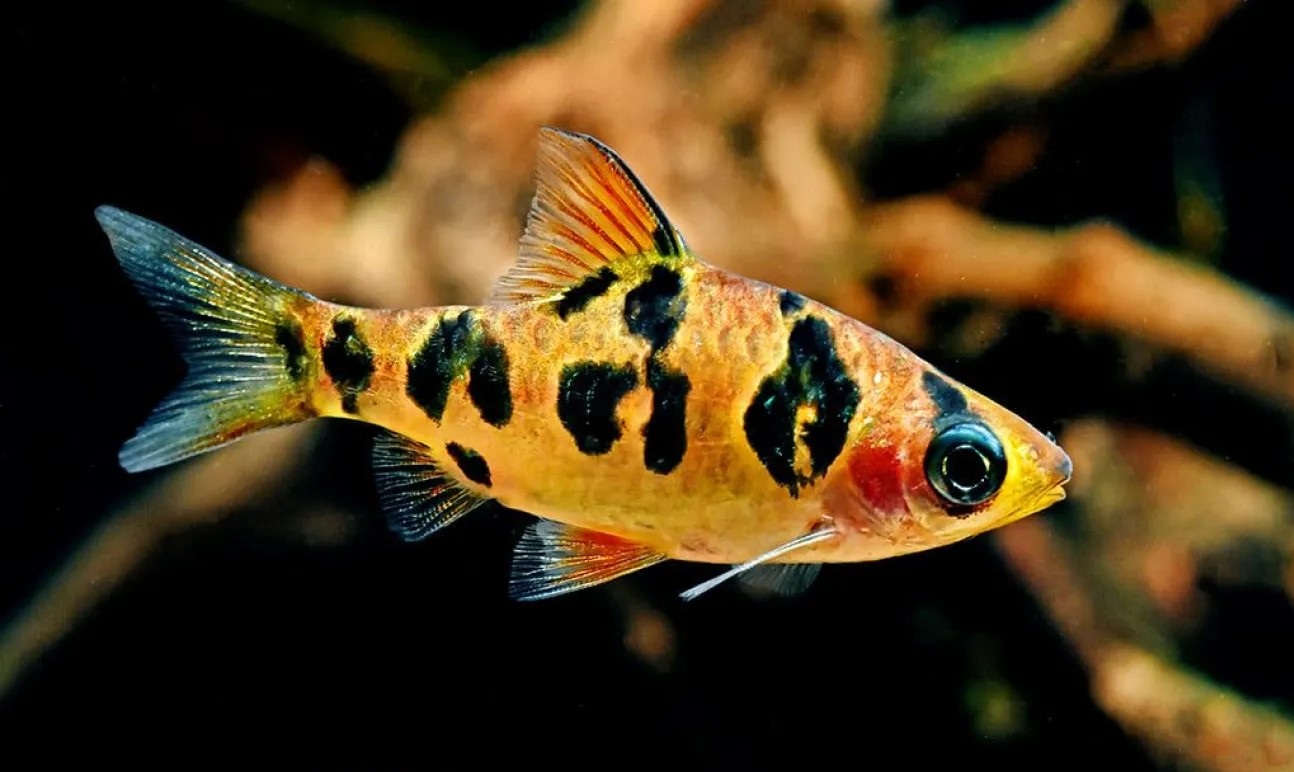 Puntius rhomboocellatus (often referred to as the Rhombo Barb) is a small, peaceful and very attractive schooling fish from Southeast Asia, ideal for planted aquariums. It comes from slow-flowing, slightly acidic and soft waters with lots of leaves, roots and shade. It likes a “blackwater” setup.