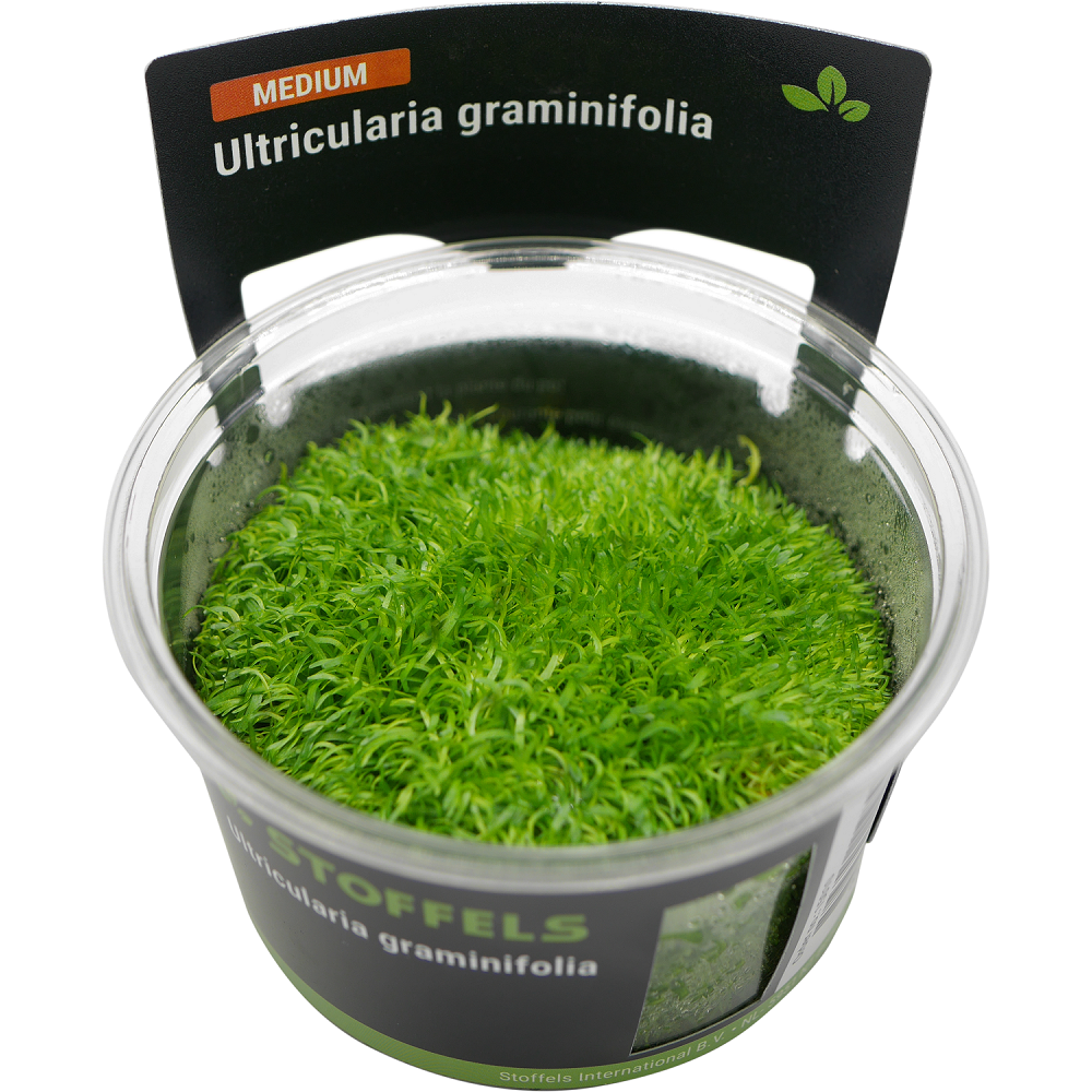 Utricularia graminifolia is an elegant, pale green foreground plant. In aquariums this plant needs moderate light to gradually produce a thick but very short carpet. Utricularia has some unique features: it is a carnivorous plant and produces special traps to capture passing microorganisms. However, fish and shrimp are perfectly safe.