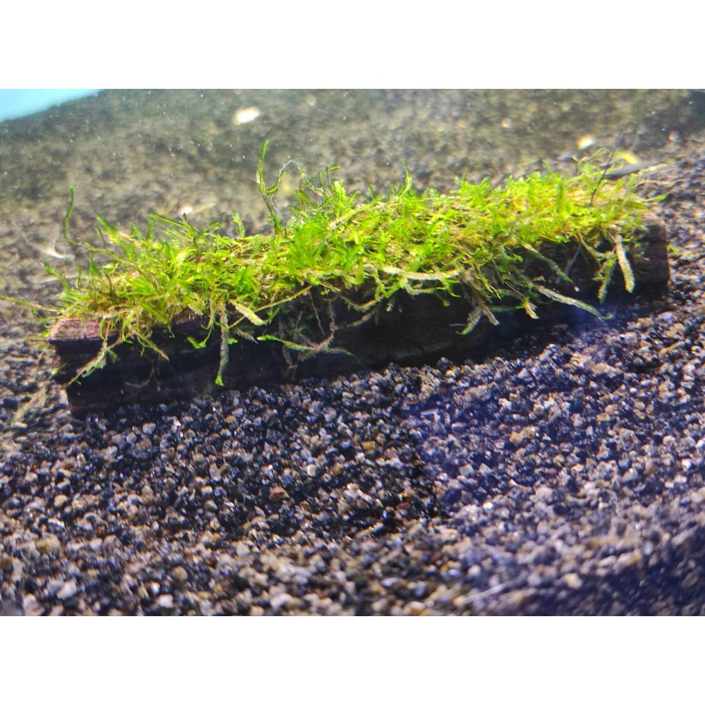 A specialty moss from Brazil, 1-3 cm tall, called "Christmas moss" because of the structure of the lateral branch that distinguishes it from the usual Vesicularia dubyana and resembles fir branches. It is more demanding than ordinary Java moss and grows more slowly. It easily clings to roots and stones and as it spreads out in the water it needs pruning to keep its shape attractive.